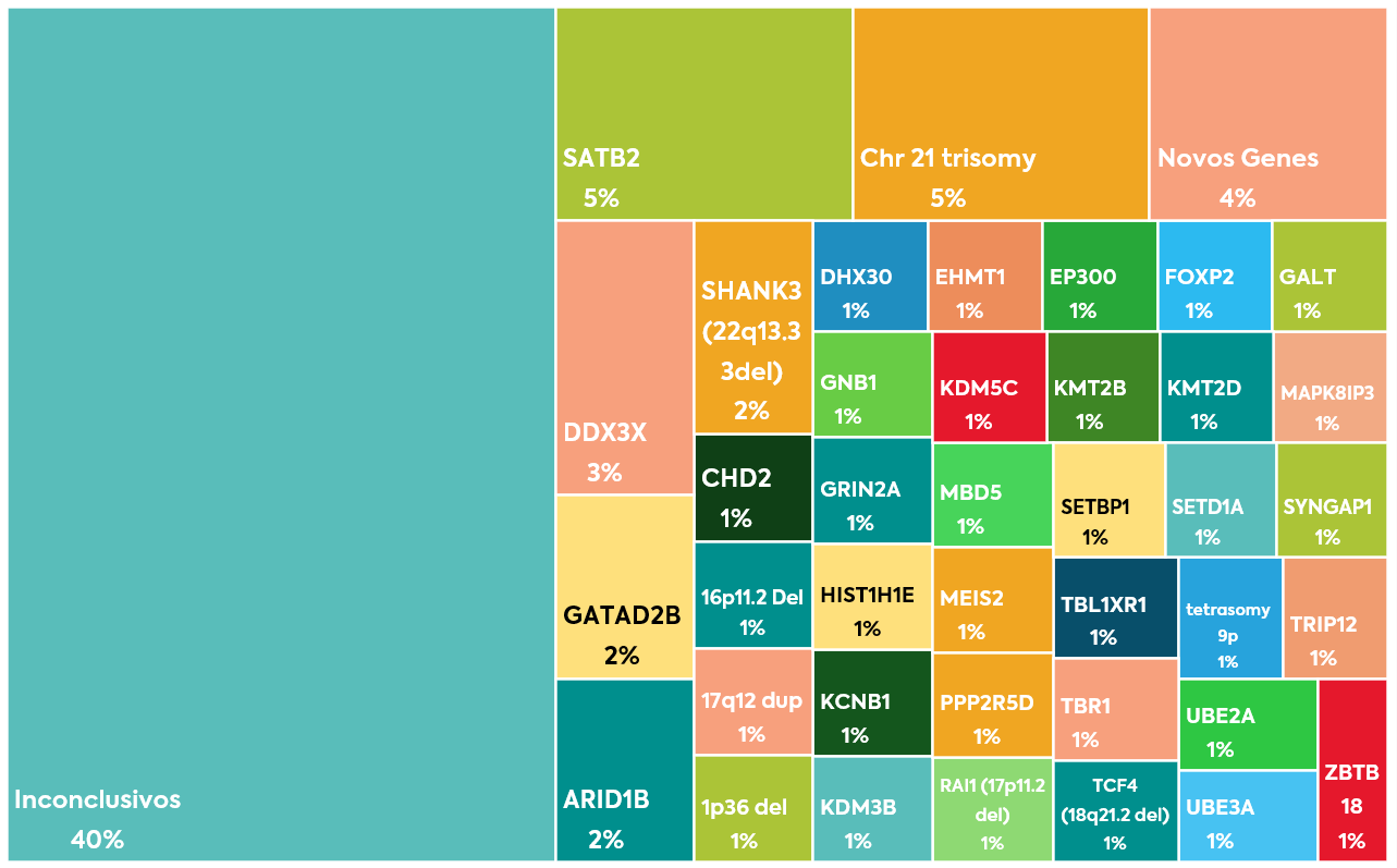 Na maioria dos casos os pacientes apresentam comorbidades, sendo atraso motor fino e grosso as condições mais comuns. Das 93 crianças que participaram do estudo, tivemos achados genéticos em 55,9% dos casos, essa taxa de detecção é maior quando comparada à taxa para autismo, epilepsia ou deficiência intelectual. Pela primeira vez, foi estabelecida relação entre AFI e 17 genes bem como 3 regiões cromossômicas, aumentando o número de genes associados à AFI em 58%.