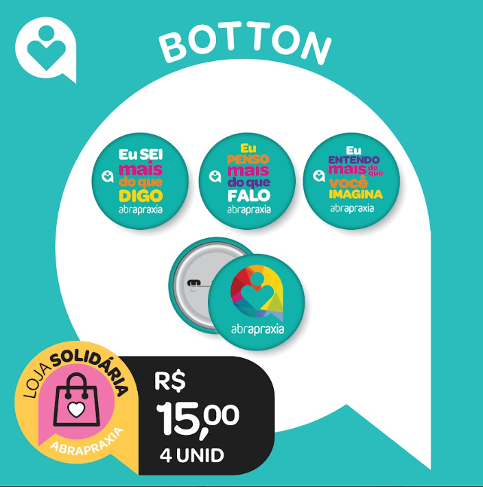 Kit com 4 Unidades de Botton – Frases e logo da Abrapraxia.